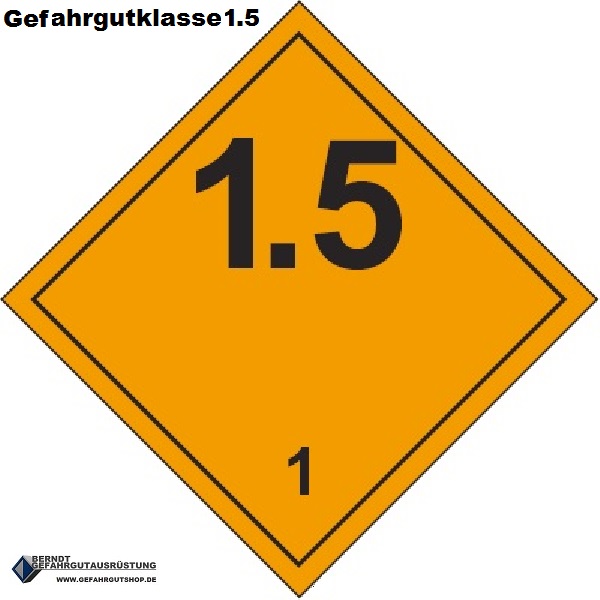 Alle Gefahrzettel / Großzettel der Gefahrgutklasse 1.5 mit Angabe einer Verträglichkeitsgruppe sind SONDERANFERTIGUNGEN ! Diese sind grundsätzlich von Umtausch und Rückgabe ausgeschlossen.