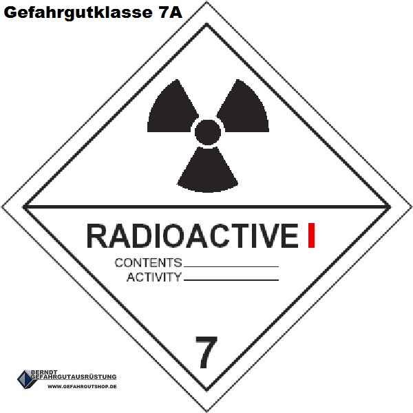 Hier finden Sie die passende Gefahrgutkennzeichnung für die Gefahrgutklasse 7A :