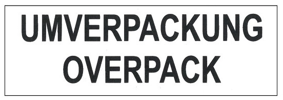 Der Ausdruck "UMVERPACKUNG" muss gut sichtbar und lesbar auf der Umverpackung angebracht werden. Die Buchstabenhöhe des Ausdrucks "UMVERPACKUNG" muss mindestens 12 mm betragen