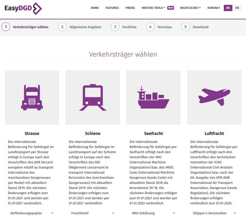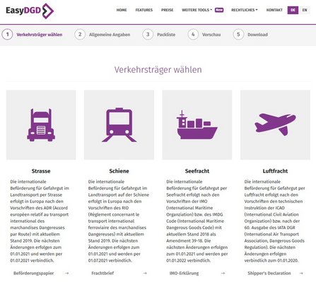 Zur schnellsten Erstellung Ihres Beförderungspapier steht Ihnen hier das ONLINE-TOOL "EASY-DGD" zur Verfügung.