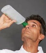 Zum Ausspülen eines Fremdkörpers aus dem Auge ist eine Spülflasche mit Sterilwasser (SW) ausreichend. Hier wird überwiegend eine sterileNatriumchloridlösung (0,9%) eingesetzt, welche dem natürlichen Salzgehalt des Auges entspricht.